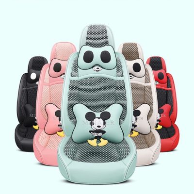 Áo Ghế Ô tô Thời Trang Da Kết Hợp Băng Lụa Đan Hoạt Hình Mickey Ngộ Nghĩnh